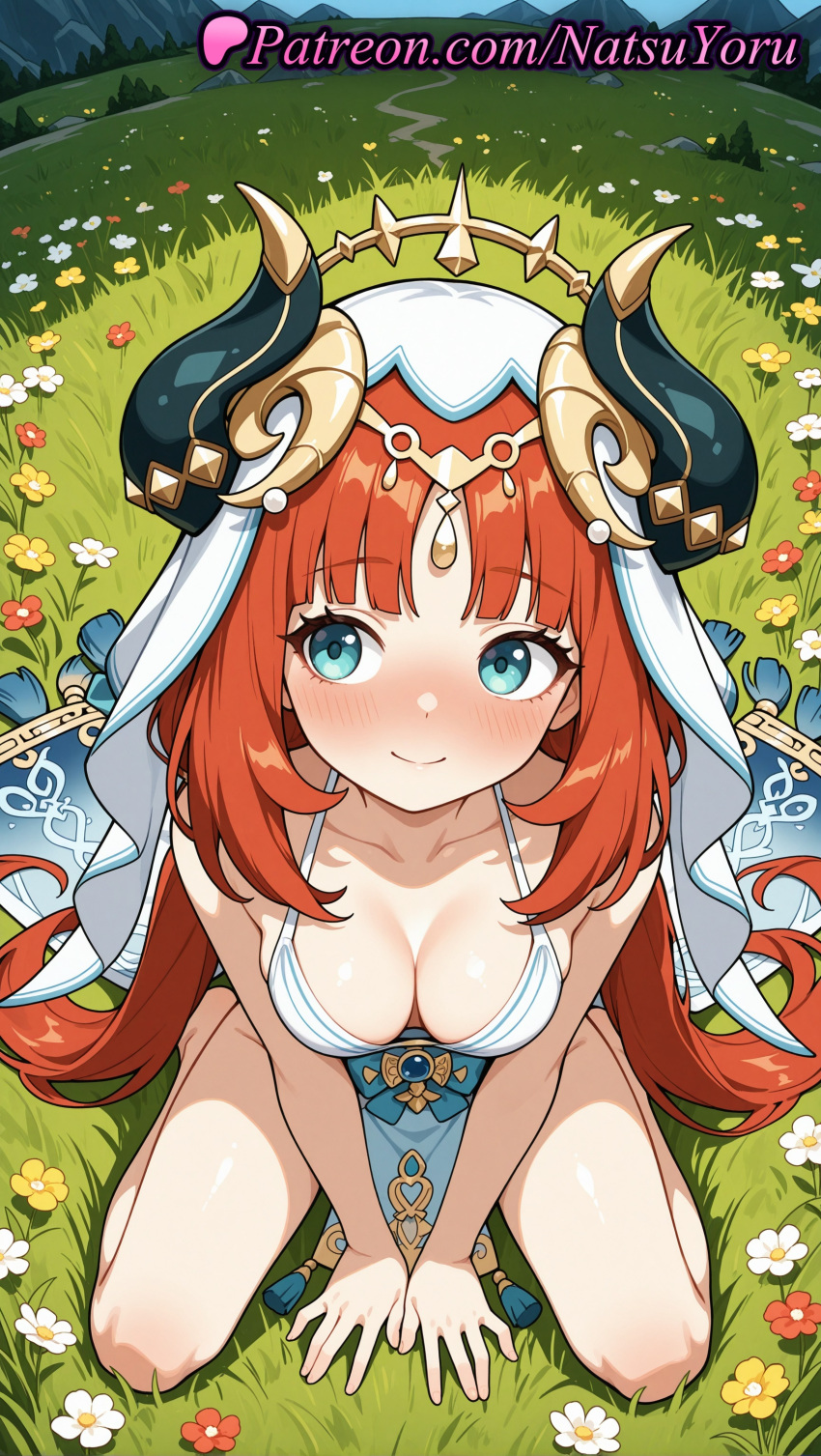 1girl 1girl 1girls 2025 ai ai_assisted ai_generated anime anime_style aqua_eyes asian bangs bare_arms bare_legs bare_shoulders between_legs big_breasts big_breasts bikini blue_bow blue_eyes blush bow breasts brooch bust circlet cleavage closed_mouth collarbone day fake_horns female_focus female_only field flower from_above genshin_impact grass halterneck harem_outfit hentai high_quality high_res high_res high_resolution horns hoyoverse jewelry kneel long_hair looking_at_viewer looking_to_the_side looking_up low_twintails meadow medium_breasts mihoyo mihoyo_technology_(shanghai)_co._ltd. natsuyoru nilou_(breeze_of_sabaa)_(genshin_impact) nilou_(genshin_impact) nilou_(genshin_impact)_(cosplay) nose_blush outside parted_bangs patreon pelvic_curtain red_flower red_hair seiza sidelocks sitting smile solo_female stable_diffusion swimsuit thighs twin_tails v_arms veil very_long_hair voluptuous voluptuous_female wariza white_bikini white_flower white_headdress white_headwear white_veil yellow_flower