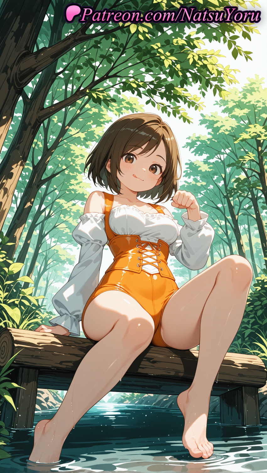 1girl 1girl 1girls 2025 ai ai_assisted ai_generated anime anime_style arm_support asian bangs bare_legs bare_shoulders barefoot big_breasts blouse blush breasts brown_eyes brown_hair bust closed_mouth collarbone corset cross-laced_clothes day detached_sleeves feet female_focus female_only final_fantasy final_fantasy_ix foot_fetish forest full_body garnet_til_alexandros_xvii hand_up hentai high_quality high_res high_res high_resolution japanese knee_up legs leotard long_sleeves looking_at_viewer medium_breasts medium_hair natsuyoru nature off_shoulder outside patreon puffy_long_sleeves puffy_sleeves shirt short_hair short_shorts shorts sitting smile soaking_feet solo_female stable_diffusion thighs toenails toes tongue tongue_out tree voluptuous voluptuous_female water wet white_shirt