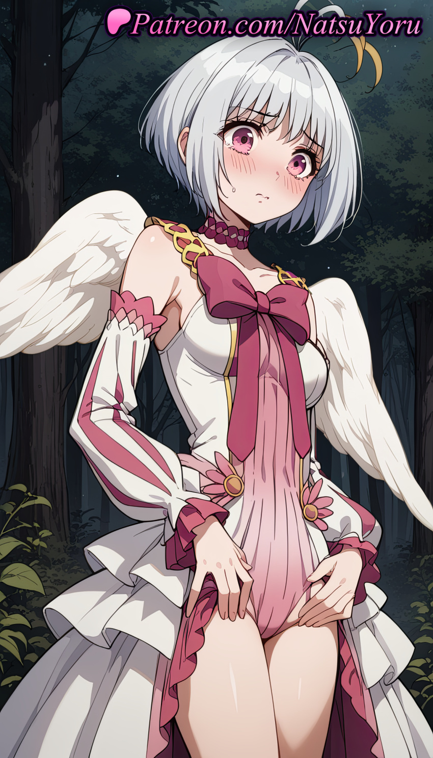 1girl 2025 ahoge ai_generated angel_wings anime anime_style antenna_hair asian bangs bare_shoulders big_breasts blush bow breasts bust cameltoe choker closed_mouth clothing collarbone cowboy_shot detached_sleeves dress embarrassed feathered_wings female_focus female_only female_solo fitoria forest frills grey_hair hentai high_quality high_res high_resolution leotard lips long_sleeves looking_at_viewer medium_breasts natsuyoru nature night outside patreon pink_bow pink_choker pink_eyes pink_leotard puffy_sleeves short_hair showgirl_skirt small_breasts solo_female stable_diffusion standing sweatdrop tate_no_yuusha_no_nariagari the_rising_of_the_shield_hero thighs tree voluptuous voluptuous_female white_dress white_hair white_leotard white_sleeves white_wings wings