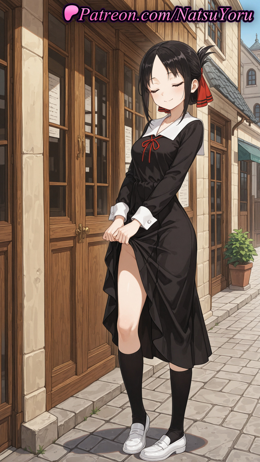 1girl 2025 ai_generated anime anime_style bangs big_breasts black_dress black_hair black_socks blush breasts building bust closed_eyes closed_mouth clothes_lift collarbone collared_dress day door dress dress_lift facing_viewer female_focus female_only female_solo folded_ponytail full_body hair_ribbon hair_ribbons hentai high_quality high_res high_resolution kaguya-sama_wa_kokurasetai_~tensai-tachi_no_renai_zunousen~ kneehighs kneesocks lifted_by_self loafers long_sleeves medium_breasts natsuyoru neck_ribbon no_panties outside parted_bangs patreon plant potted_plant red_ribbon ribbon school_uniform shinomiya_kaguya shoes short_hair shuuchiin_academy_school_uniform sidelocks skirt_lift small_breasts smile socks solo_female stable_diffusion standing thighs uwabaki voluptuous voluptuous_female wet white_footwear