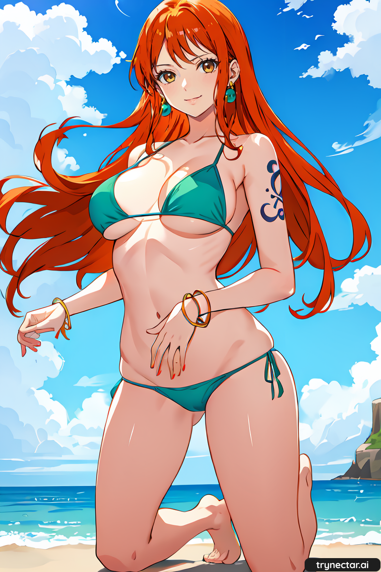 1girl ai_generated aigeneratedp anime beach bikini female_only hentai long_hair nami nami_(one_piece) ocean one_piece outside trynectar.ai very_long_hair waifu