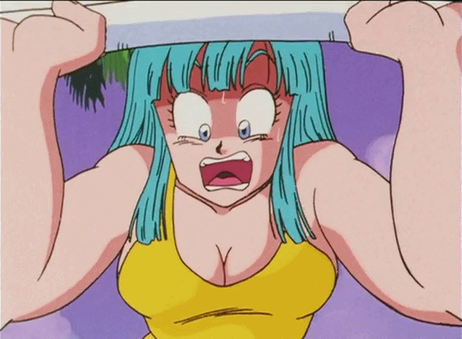Anime – anime breasts chair cleavage dragon ball dragon ball z gif maron scared