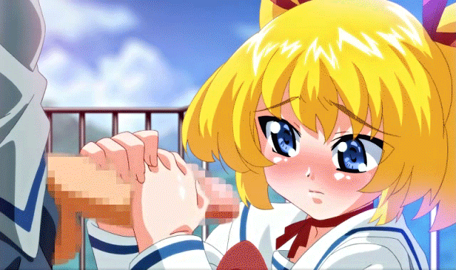 Anime – animated animated gif anime blonde hair breasts cum cum on face fellatio