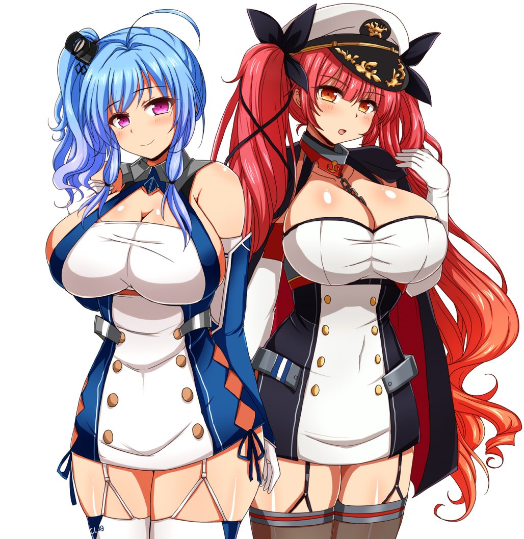 Anime – 2 girls anime blue hair breasts large breasts multiple girls original red