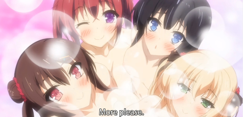 Anime – 1boy 1girl 3 girls all fours anime ass bare ass bath bathing blush breasts